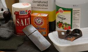 Você também pode misturar uniformemente água morna, alvejante e sabão em pó em um balde.