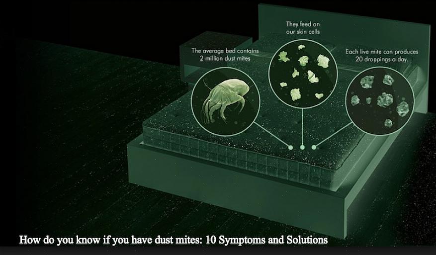 Os ácaros da poeira são organismos minúsculos, geralmente atingindo apenas cerca de 0,3 mm de tamanho. Eles vivem em casas humanas, onde se alimentam da poeira produzida pela pele humana e animal. Os ácaros preferem temperaturas quentes; portanto, eles habitam principalmente roupas de cama e travesseiros. Esses organismos não são prejudiciais em si mesmos, mas seus excrementos, que contêm enzimas digestivas que sobraram, são uma causa considerável de asma e outras doenças alérgicas. Saber que você tem ácaros reduz significativamente outros equívocos sobre a resposta alérgica. Como os ácaros são invisíveis a olho nu, outros métodos são usados para detectar sua presença. Aqui estão algumas dicas sobre como saber se você tem ácaros.