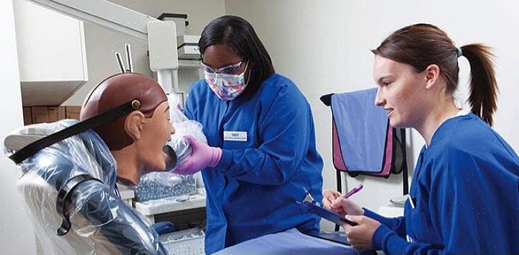 Assistentes dentais auxiliam no consultório do dentista. Eles cuidam de equipamentos e instrumentos. Eles higienizam os instrumentos e os preparam para o uso. Eles também controlam os níveis de estoque de equipamentos; preparar cimentos, compósitos, moldes e matrizes. Eles lidam com pacientes em emergências, fazem raios-X, aplicam curativos, polem os dentes e coletam moldagens dentárias e amostras de mordidas. Além do trabalho médico, eles podem auxiliar nas operações de escritório. Eles podem marcar consultas, cumprimentar pacientes e fazer contabilidade leve. Eles preparam e gerenciam prontuários de pacientes, arquivam e atendem telefones conforme necessário.